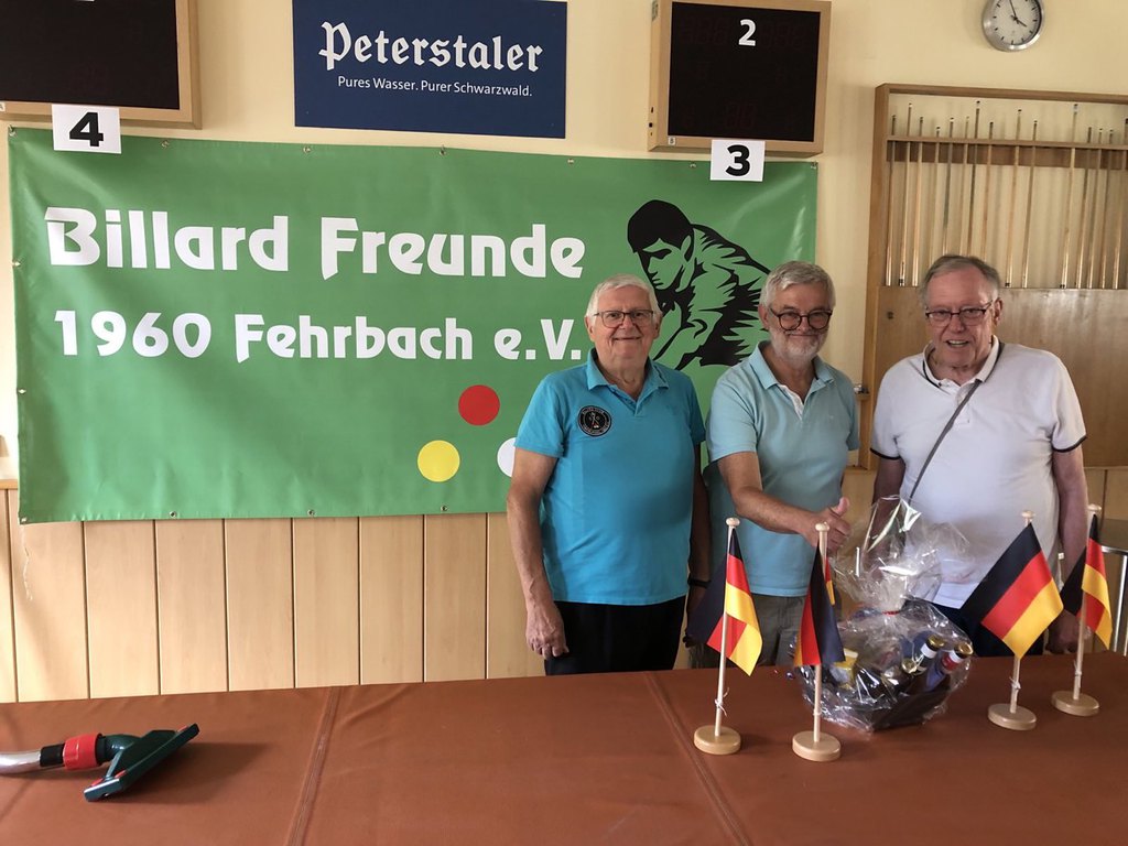 Ausrichter des diesjährigen Senioren-Pokals Dreiband waren die Billardfreunde Fehrbach. 27 Sportler hatten sich zu diesem Turnier angemeldet - darunter unsere 4 Starter Wolfgang Fiebig, Bernd Haimerl, Michael Hoch und Norbert Klörs.
